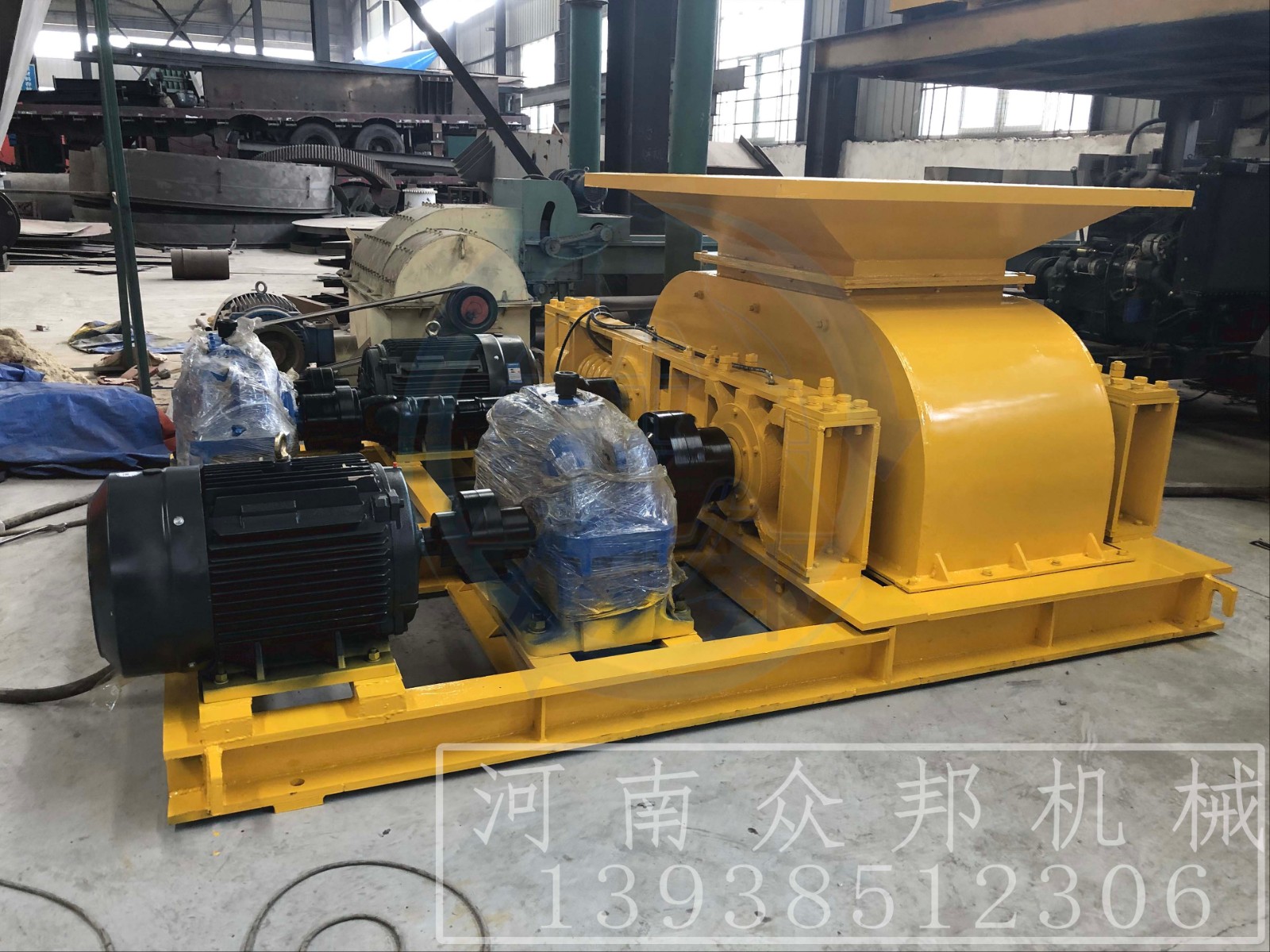 眾邦公司整體輥皮式雙齒輥破碎機,比常規雙齒輥破碎機更耐好用、維修簡單、出料粒度10mm-80mm可任意調節,粒度均勻。